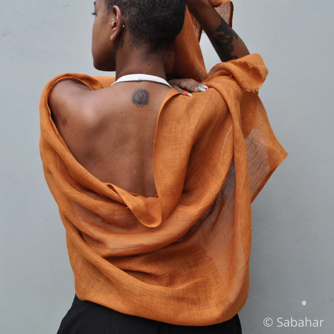 Discover the Telba shawl, made from imported linen from Belgium and meticulously crafted on traditional Ethiopian looms. Offering vibrant colors and elegantly finished with fringes, the Telba shawl embodies the beautiful artistry of linen production, delivering both luxury and sustainability.